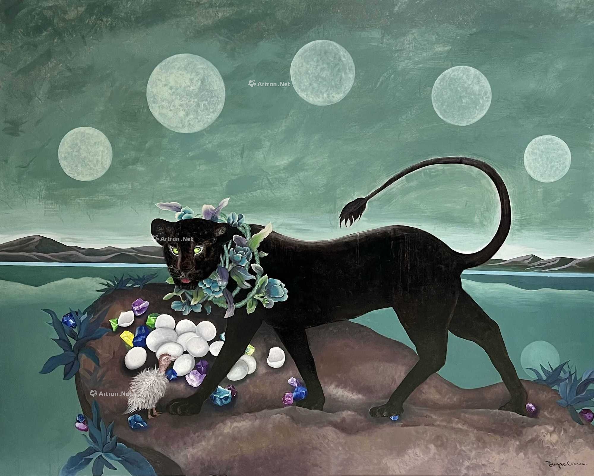 该作融合东西方艺术,是艺术家最大尺幅的作品之一,致敬马奈《草地上的午餐》的经典构图,将西方古典技法与东方诗意融合。作品曾在北京蜂巢艺术中心展出,被多家重要艺术机构收藏。