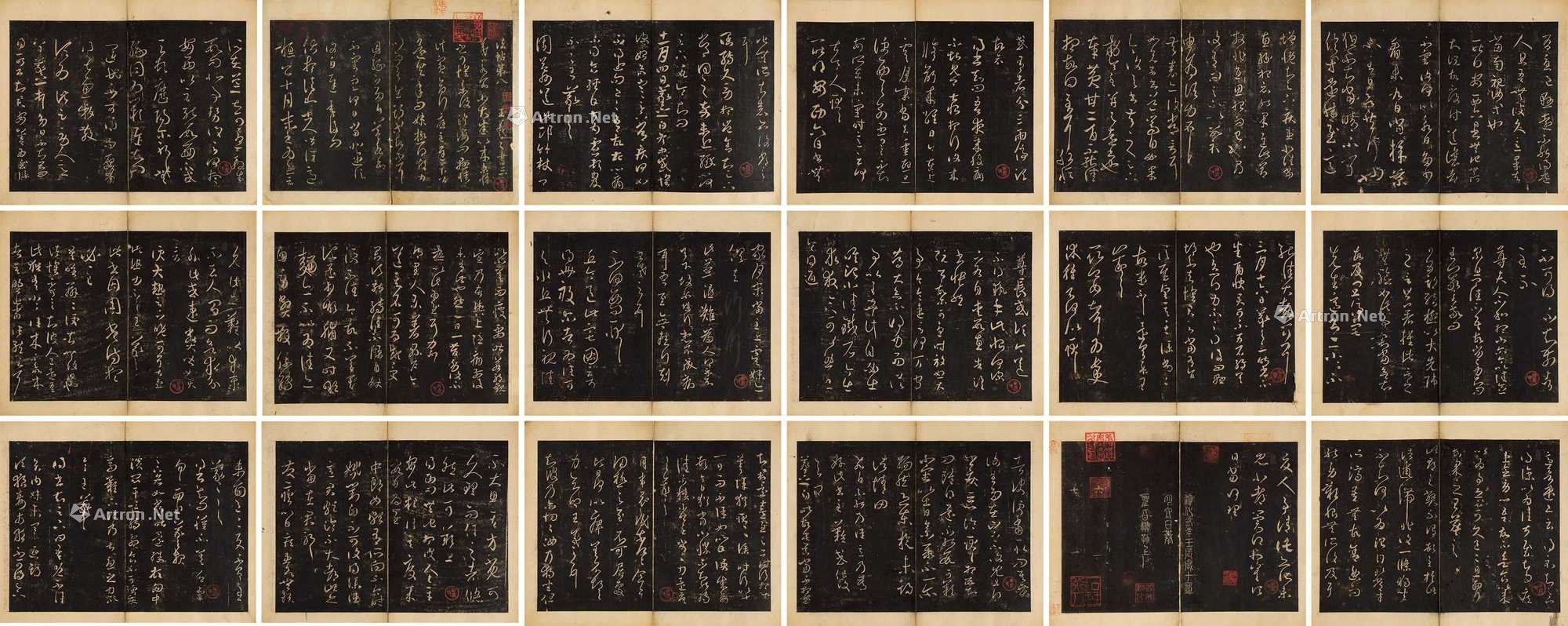 第61号拍品为北宋拓二王府本《淳化阁帖》卷八,是未公开的传世孤拓,与上海博物馆藏阁帖最善本卷六同版版本。递藏清晰:有北宋苏舜卿四代相印、南宋内府“睿思东阁”印,卷首“晋府书画之印”、末开“敬德堂图书印”等,证明明初已入晋府。其收录王羲之书作48种,是宋帖收藏中兼具稀缺性与价值的核心品类。该拓本补齐了“上海博物馆祖本—北宋二王府本—南宋初期泉州本祖本”的传承链条,他的出现全面厘清了学界对代曹士冕《法帖谱系》中北宋《淳化阁帖》的认知。《淳化阁帖》作为近年宋帖拍卖的“风向标”,其私人藏孤本身份打破了北宋拓《淳化阁帖》多归公库的现状,将激活市场对高端善本碑帖的关注度。