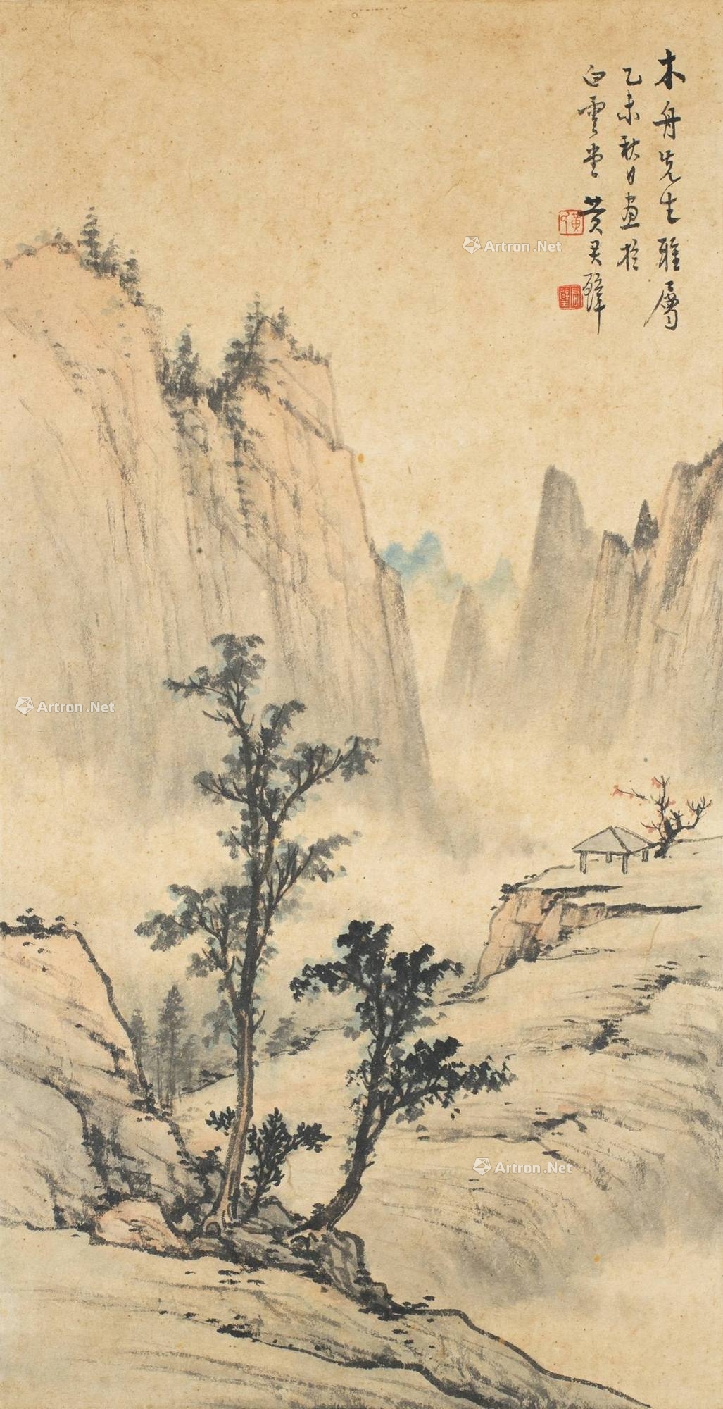 款识:丹山卿云,已亥清和,法范长寿,奇峰白云,画于西溪焉文山庄。石头陀 蓝瑛。