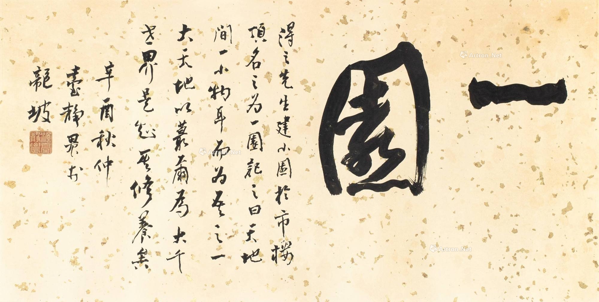 款识:一园。得之先生建小园于市,楼顶名为一园,记之曰天地间一小物耳,而为吾之一大天地以录尔。为大千世界是知其修养矣。辛酉秋仲台静农于龙坡。