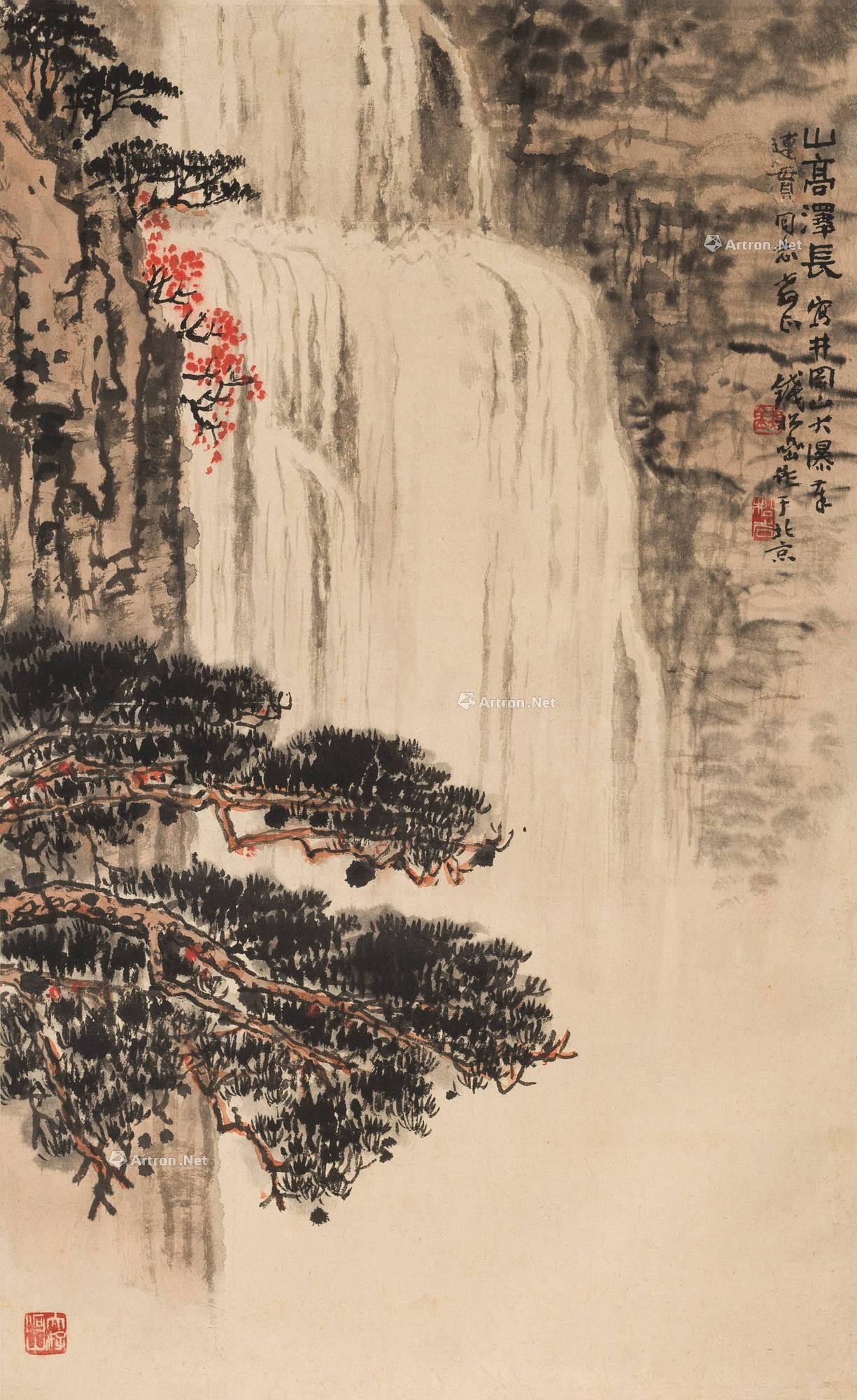 款识:山高泽长。写井冈山大瀑布。连贯同志教正,钱松嵒作于北京