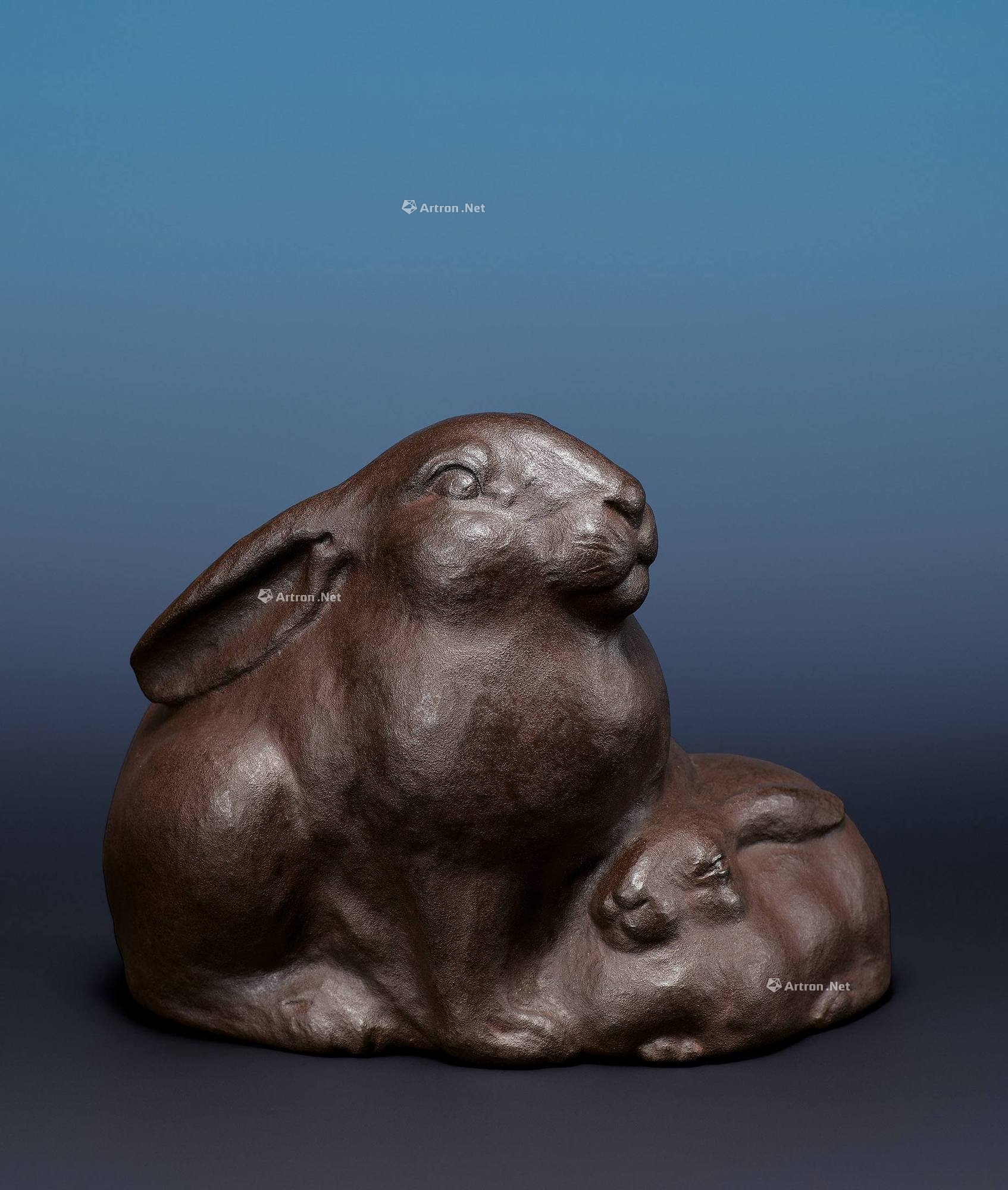 黑濑宗世〈铁打出亲子兔置物〉,曾展于加贺市美术馆并收录于展览图录。铁工细腻,母兔护雏之姿温柔动人,不仅彰显黑濑宗世卓越的金工技艺,更藉「亲子」主题传递家庭情感与世代相承的意涵。