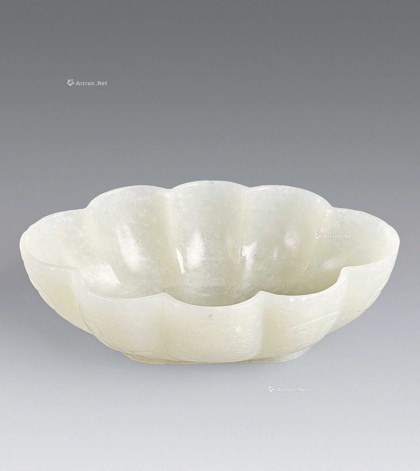 此件明代八曲杯,玉质白润,线条规整,包浆浑厚,品相完美。 兼具陈设、实用、收藏之价值。八曲杯之造型源自波斯萨珊王朝的金银器,因杯口呈八曲花瓣状故名。唐朝时期通过贸易经由丝绸之路传入中国,与中国玉文化相结合出现了用白玉雕刻的八曲杯,成为贵族喜爱的宴乐器物。