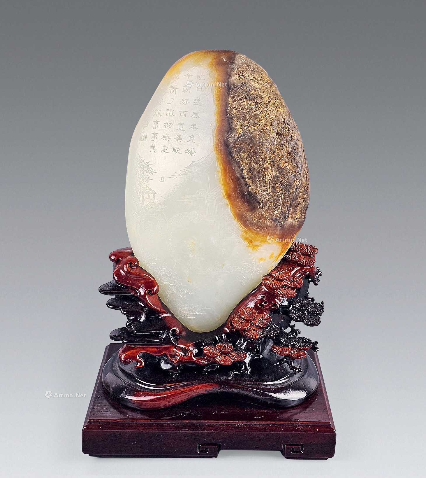 此件和田玉籽料摆件呈现浑圆状,磨圆度好,表面光滑,具有厚薄不一的皮壳,玉质温润,光泽度强。籽料摆件表面刻有清代乾隆皇帝的御诗《舟行杂咏》:“昨日逆风未免嫌,今朝好雨意为忺,人情了识初无定,所欲安能事事兼”。