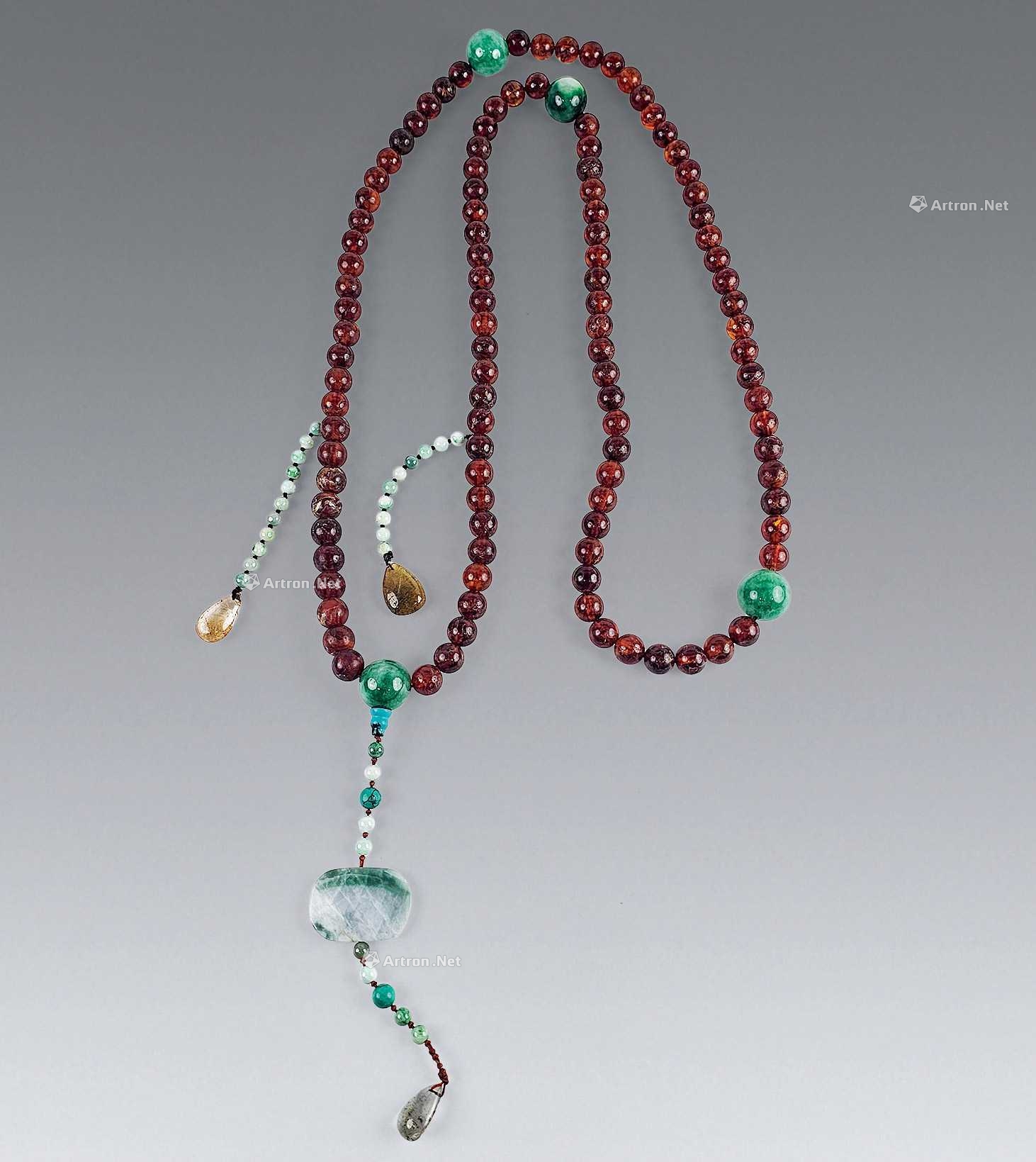 此件拍品为清代琥珀朝珠,108颗主珠由金珀组成,象征一年中的108个节气,每27颗主珠中间夹的四颗翡翠佛头寓意四季安泰。另配背云、记捻。《大清会典》规定琥珀朝珠由文官五品、武官四品以上的官员才能佩戴。如此完整一套流传至今实属不易。