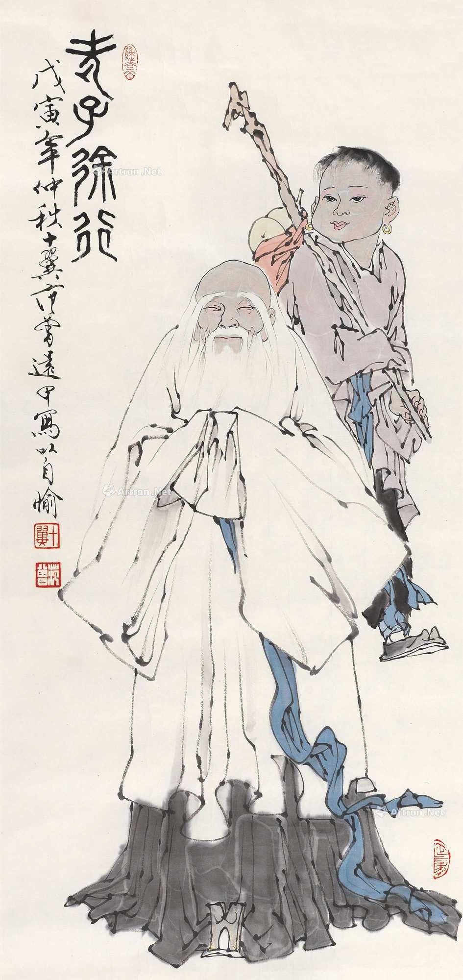 款识:老子徐行。戊寅年仲秋,十翼范曾还甲写以自愉。