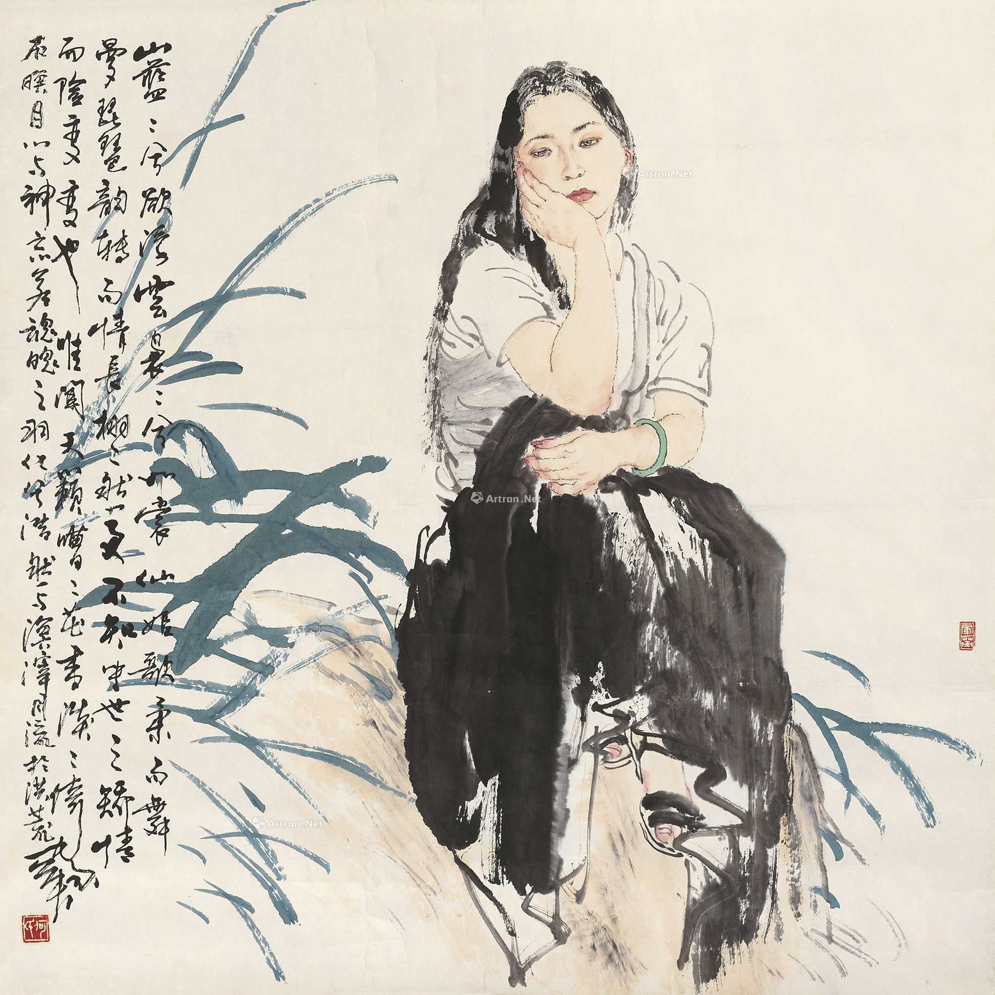 款识:山蓝蓝兮欲浮云,袅袅兮如裳。仙姬歌柔而舞曼,琵琶韵转而情长。栩栩然,而不知几世之矫情,而险变变也。唯闻天籁嘈嘈花香,淡淡依石暎目。与神忘者魂魄之羽化兮,浩然与溟滓月流于洪荒。家英。