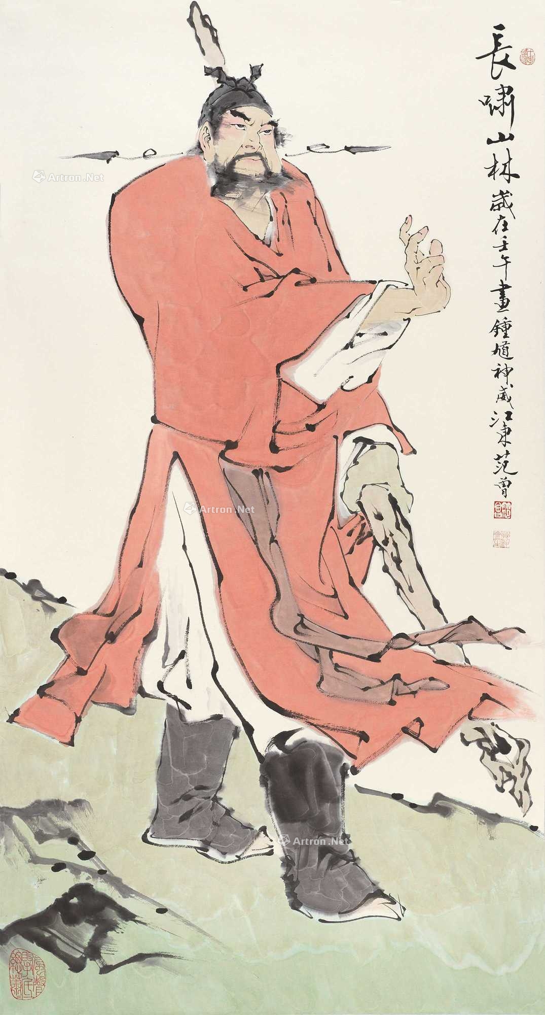 款识:长啸山林。岁在壬午,画钟馗神威江东范曾。