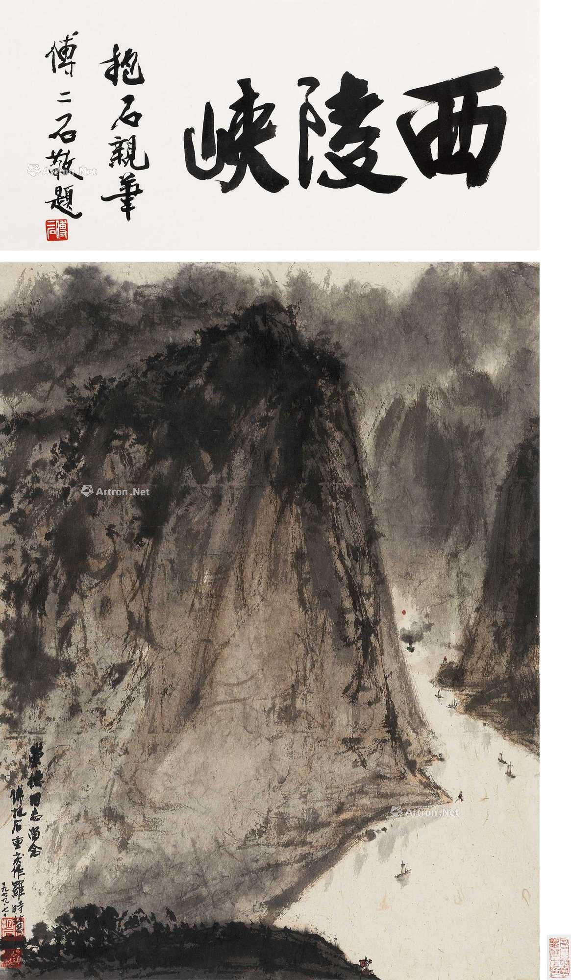 诗堂:西陵峡。抱石亲笔。傅二石敬题。钤印:傅二石