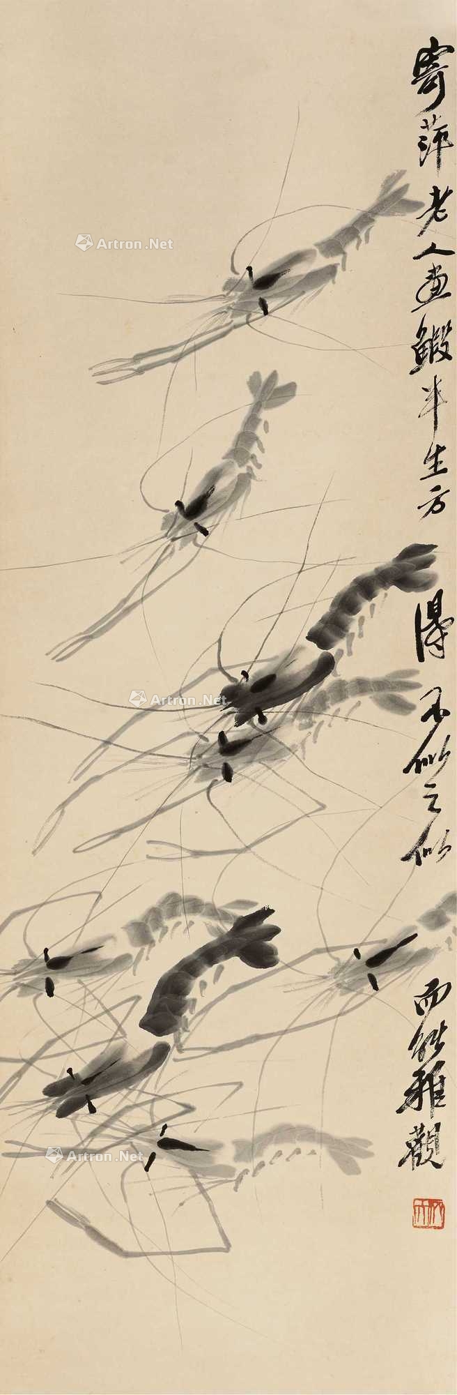 款识:寄萍老人画虾半生方得不似之似,而能雅观。