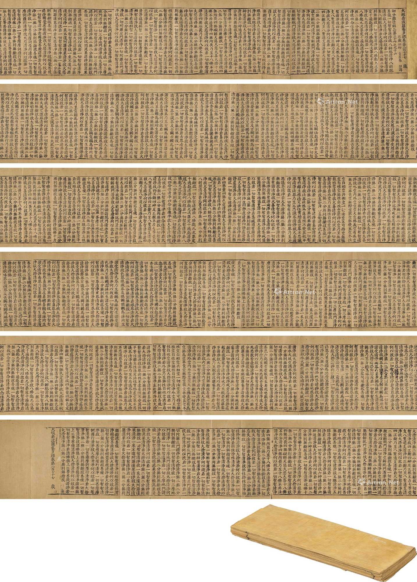 是经为思溪资福藏《大般若波罗蜜多经》卷第二百七十七。《大般若波罗蜜多经》为大乘佛教般若类经典总集,历代大藏经均以此为首。此册千字文编号“岁”字,上下单栏,首尾全,计17版,每版5页,每页6行,行17字,第17版3页。手书颜体字上版,字体方正肥厚,墨色浓黑。纸张坚挺厚实,麻筋毕现。《思溪资福藏》也称《资福藏》,为湖州路王永从兄弟一家舍资助缘刊刻的大藏经,因其刊刻于两浙道湖州(后改称安吉州)归安县松亭乡思溪村圆觉禅院(后升格为法宝资福寺)而得名。始镌于北宋末靖康元年(1126),至南宋绍兴二年(1132)历时6年而完,此时称之为《思溪圆觉藏》(也称《前思溪藏》、《圆觉藏》)。
