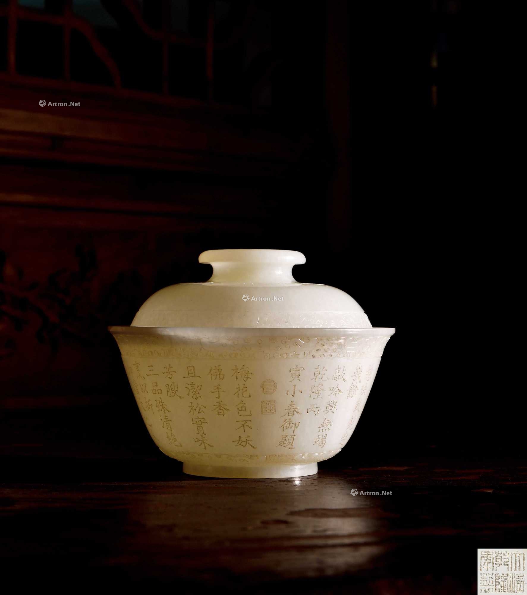 参 阅:北京保利十二周年秋季拍卖会Lot5174清乾隆 御制白玉刻「三清诗」盖碗 成交价 RMB 4,370,000