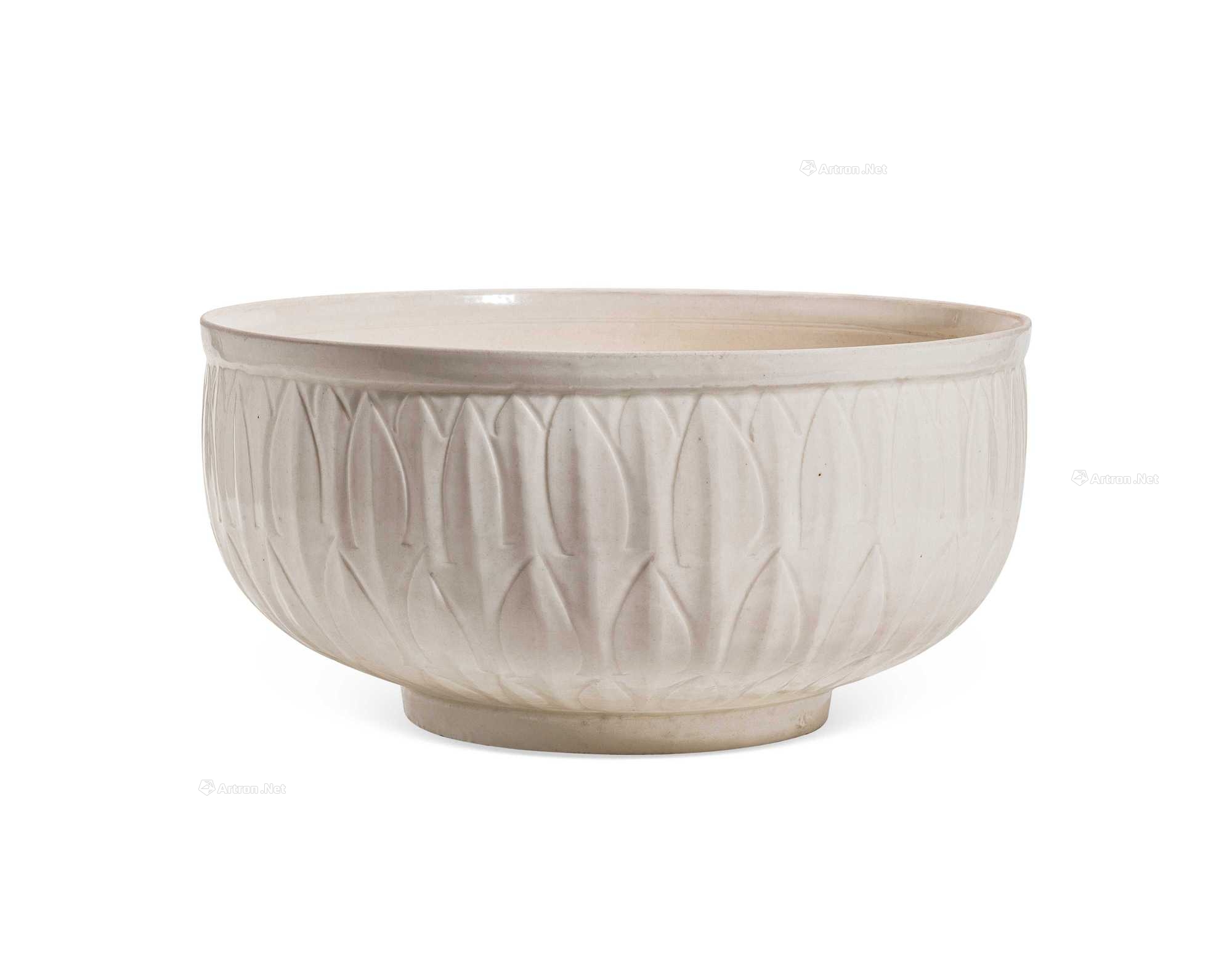3.中贸圣佳2021上海秋季拍卖会Lot1338明 白釉外刻莲瓣内刻莲池游鱼纹大钵 成交
