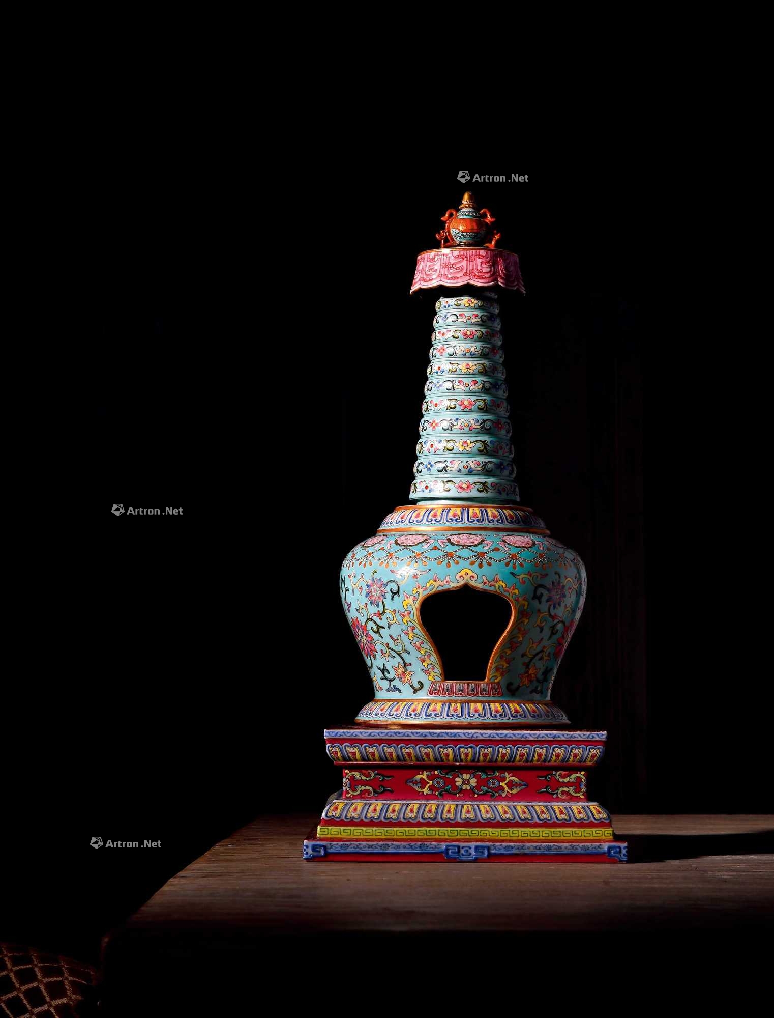 1.保利厦门2017春季拍卖会Lot0934清乾隆 青花粉彩缠枝花卉纹佛塔 成交价 RMB 862,500