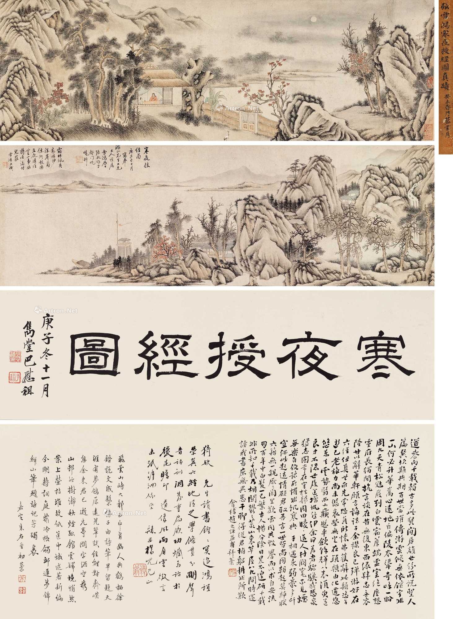 引首:1.寒夜授经图。庚子冬十一月,隽堂巴慰祖。