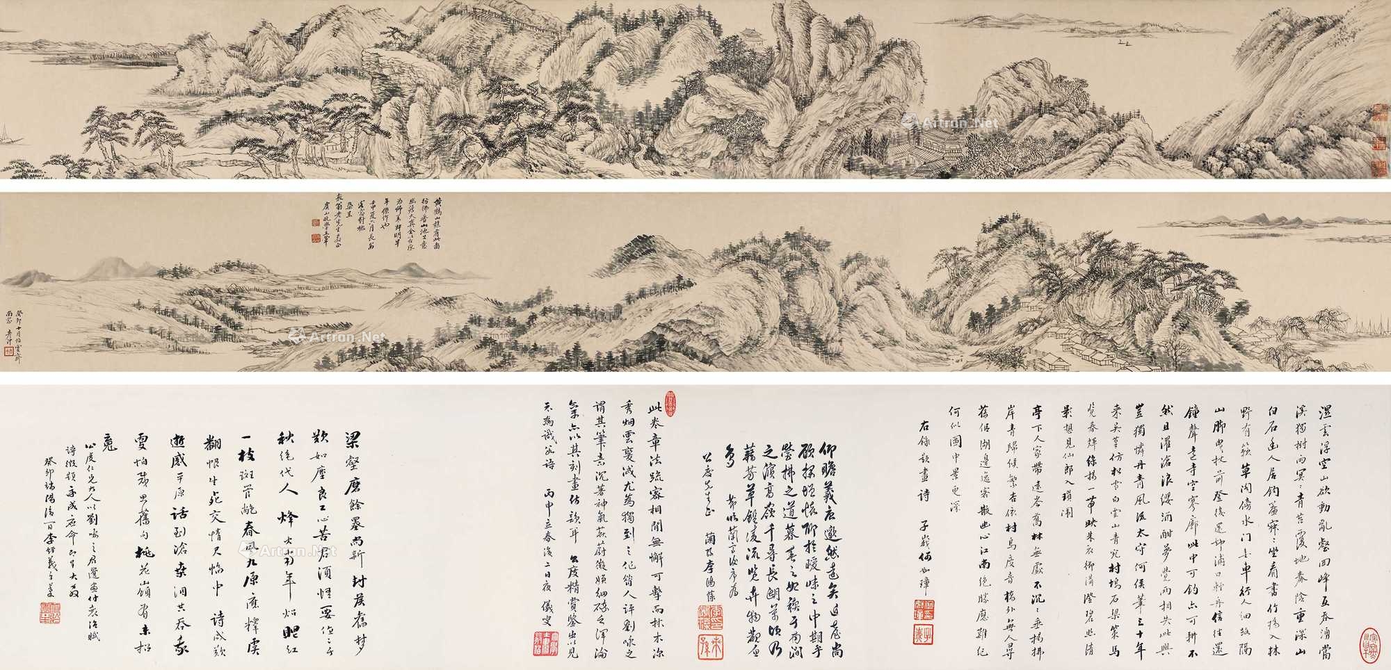 手卷书画作为中国传统书画的经典形制,以 “展卷赏玩、收卷珍藏” 的独特体验,成为藏家追捧的瑰宝。徐徐展开之际,如行山阴道上,烟霞泉石次第呈现,这种"移步换景"的审美体验,正是手卷的灵魂所在。收藏手卷,实为收藏一段可触摸的文化记忆。从引首的题签,到本幅的笔墨,再到拖尾的跋文,每一环节都承载着历代文人的审美意趣与生命痕迹。