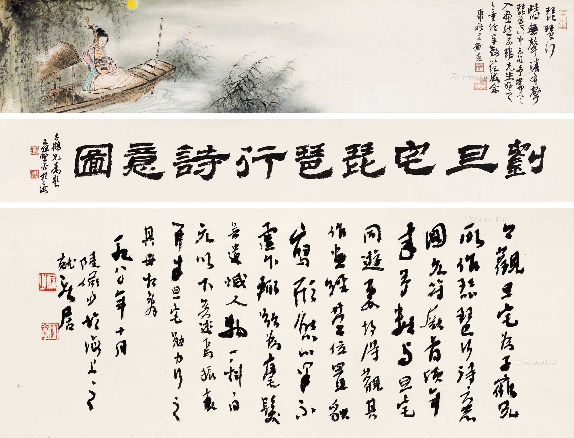 引首:刘旦宅琵琶行诗意图。子鹤兄属题,应野平于上海。钤印:应、也平