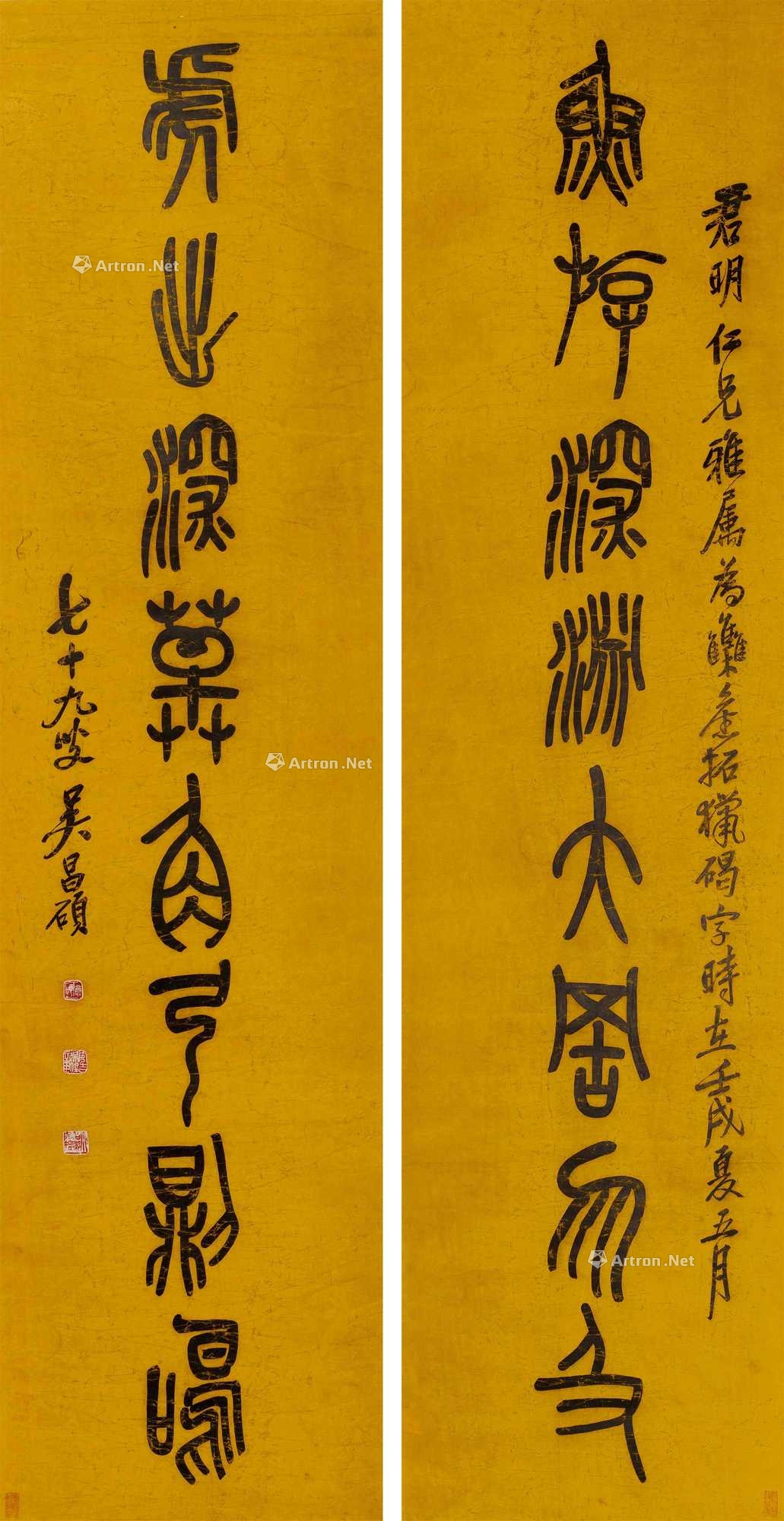 海派书画的宗师吴昌硕,其作品向来以金石气见长。本次专场中的吴昌硕佳作,既有其标志性的花卉题材,苍劲的笔墨、古朴的构图,将“重、拙、大”的艺术风格展现无遗。吴昌硕的书法以篆书为最精,他将金石篆刻的刚劲力道融入笔墨,笔下篆书线条厚重凝练、刚柔并济,结体宽博开张,既保留了石鼓文的古朴雄浑,又融入个人风格的苍劲老辣,形成独树一帜的“吴派篆书”风貌。对于喜爱海派书画、追求笔墨底蕴的藏家来说,是极具代表性的收藏选项。