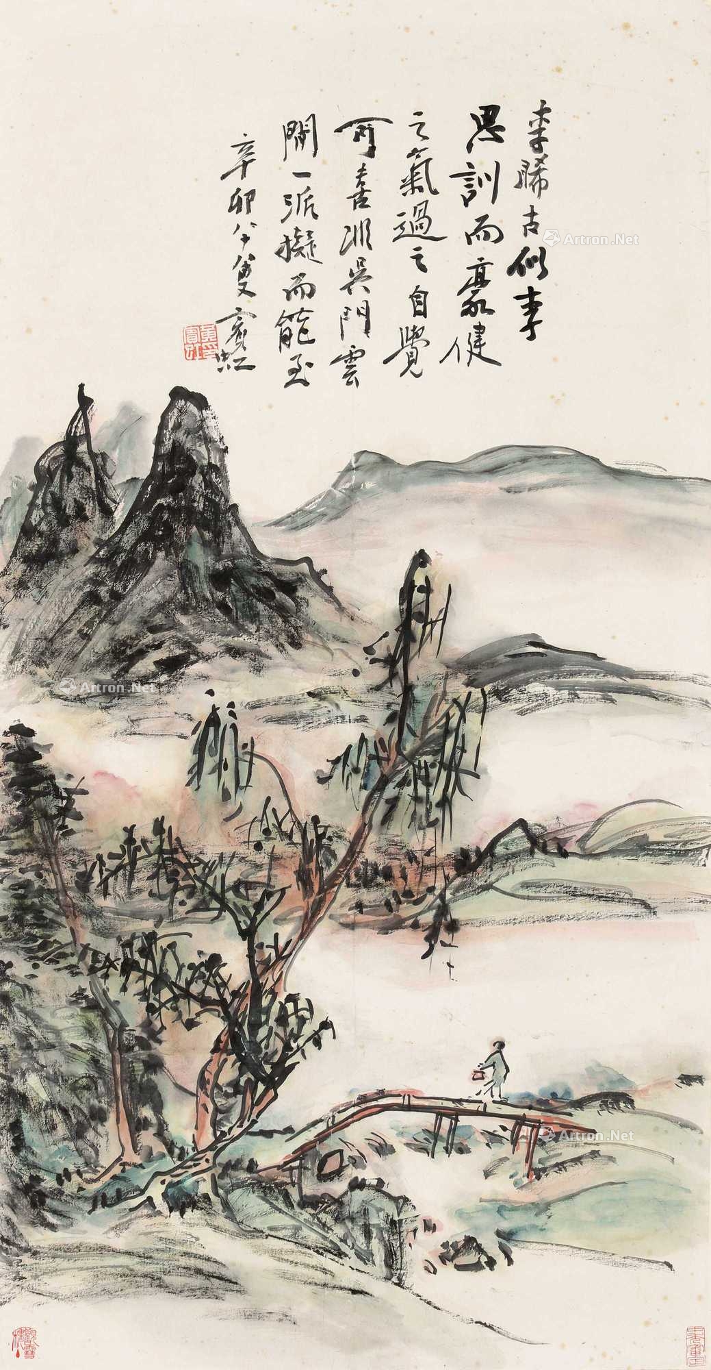 题识:李晞古似李思训而豪健之气过之,自觉可喜,非吴门云间一派拟而能至。辛卯八十八叟宾虹。