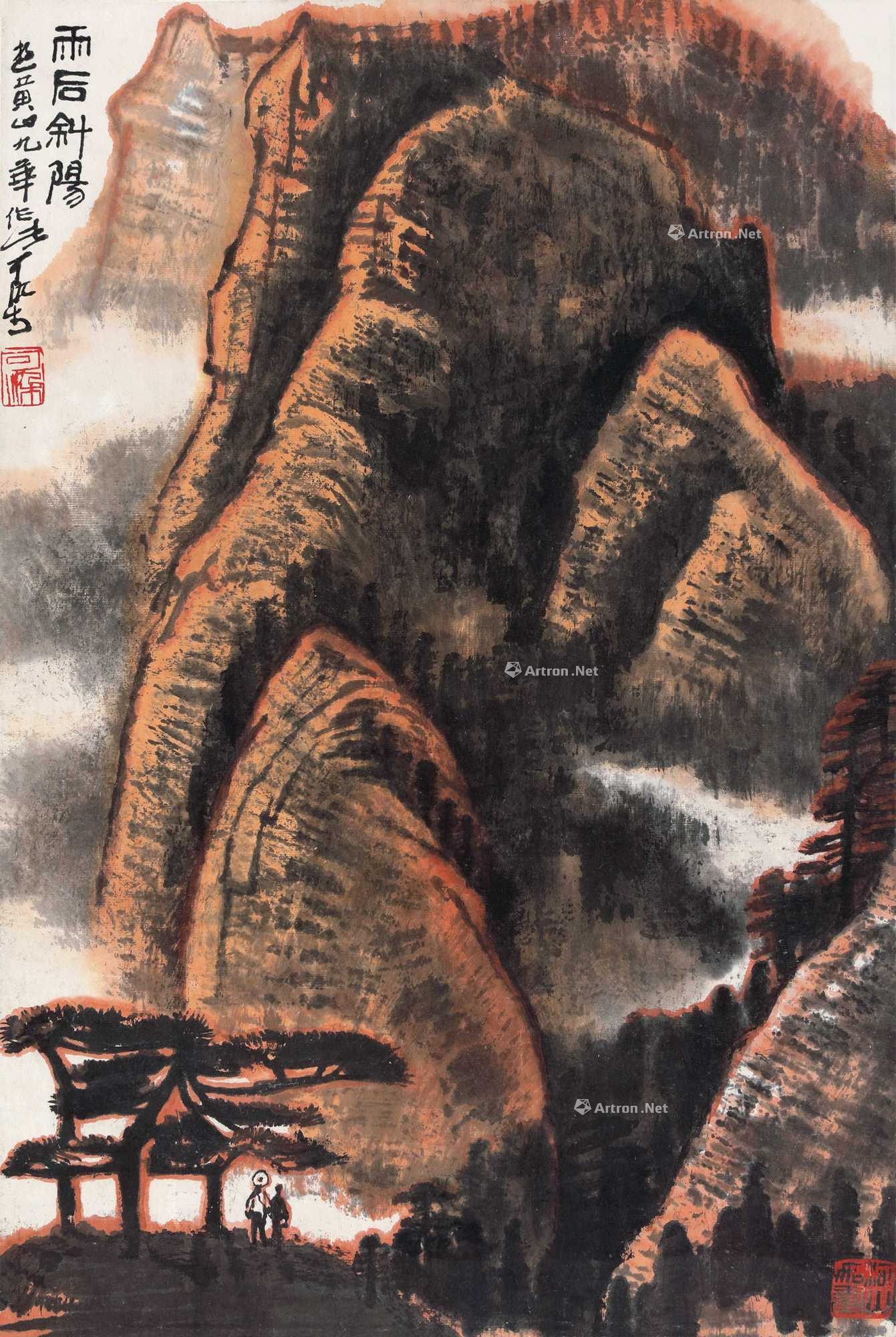 题识:雨后斜阳。游黄山、九华作此,可染。