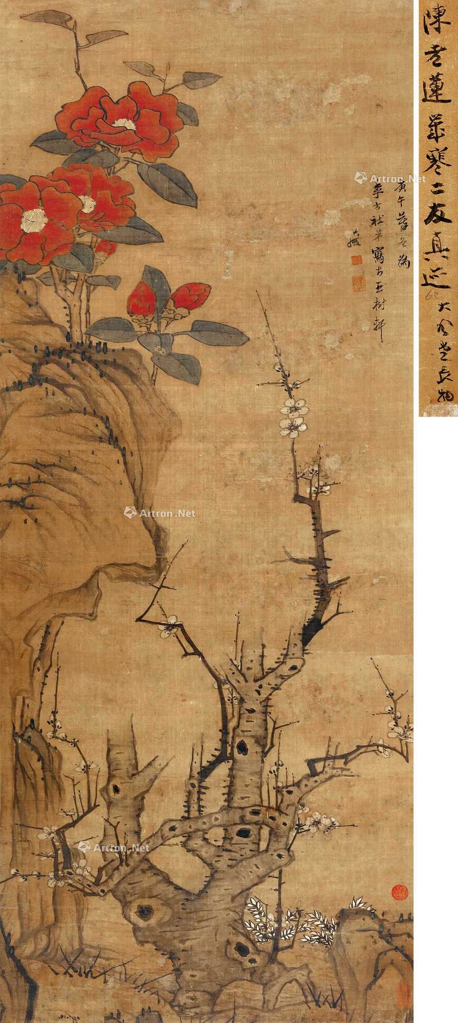 题签:陈老莲岁寒二友真迹,大风堂长物。