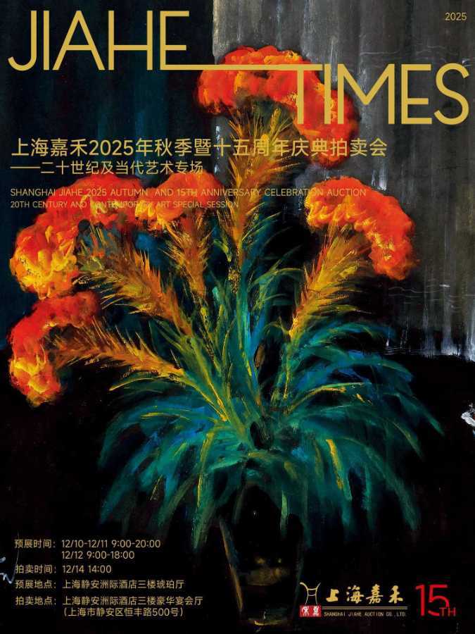 本次上海嘉禾2025秋季暨十五周年庆典拍卖会,不仅是一场艺术的荟萃,更是一场跨越时空的美学对话。我们诚邀您亲临上海洲际酒店,于12月10至12日预览现场感受艺术精粹,并与13日至14日上午10时,共同见证拍卖正式举槌。那些凝结时代灵感、融贯东西的典藏之作,将静候您的品鉴,与我们一同探寻艺术深处永恒的光华。