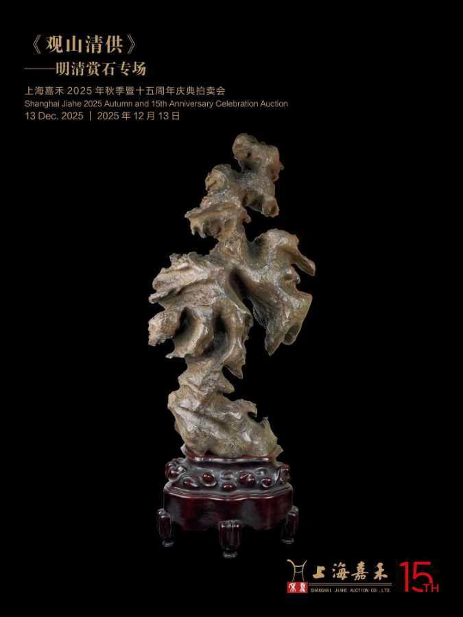 本次拍卖延续专业甄选标准,筹备九大专场,汇集1080件艺术精品,涵盖中国书画、现当代艺术、瓷器及古董珍玩、赏石等多个门类,既有古今经典之作,亦有中西特色藏品。预展时间为12月10日至12日,拍卖将于12月13日至14日正式举槌。上海嘉禾拍卖诚邀各界藏家、艺术爱好者拨冗莅临,近距离感受艺术魅力,共赴这场沉淀十五载的收藏之约,见证珍品背后的时光故事与艺术价值。