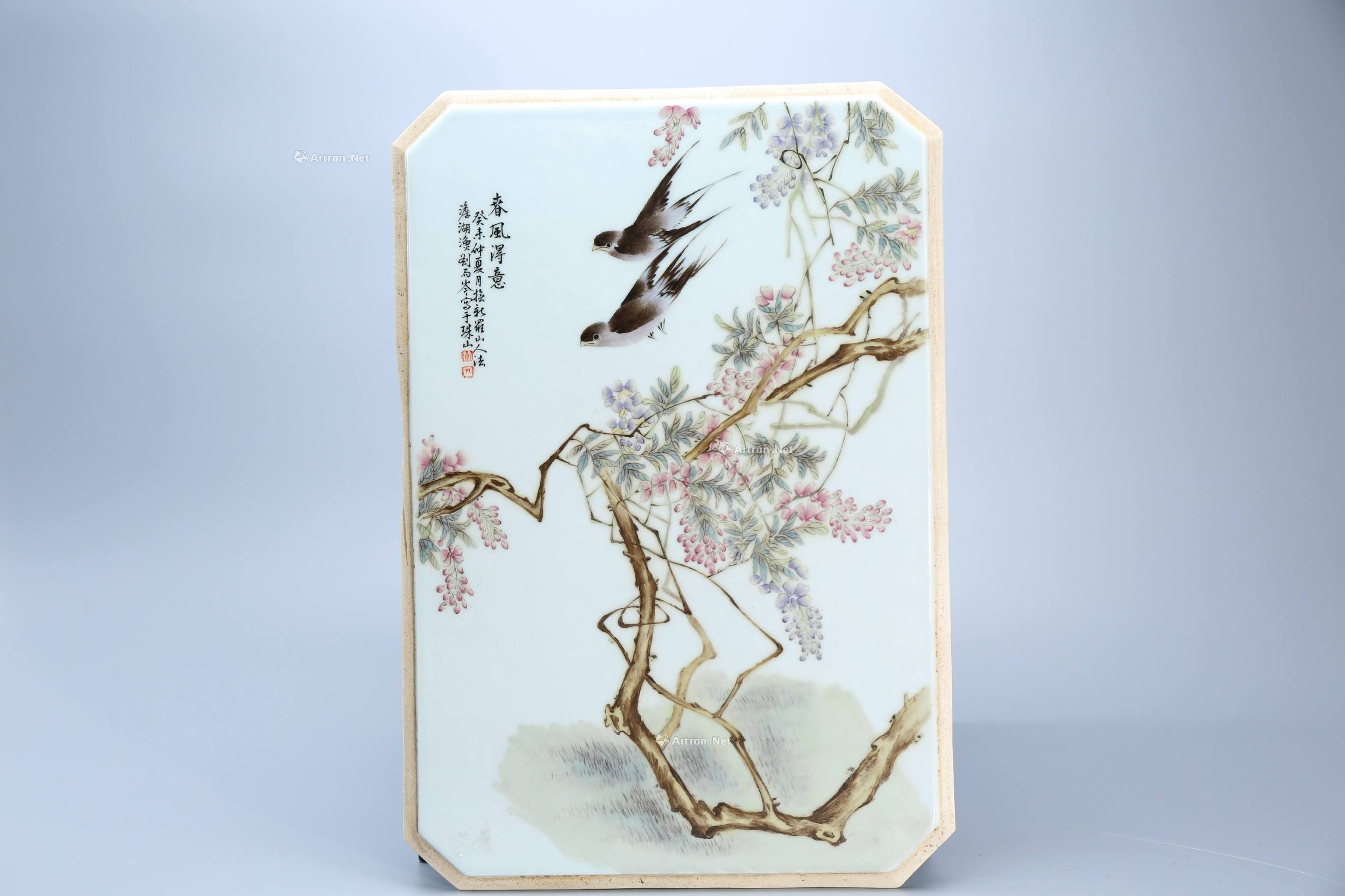 刘雨岑(1904—1969),珠山八友瓷板画大师。原名玉成,字雨诚,号澹湖鱼,斋名觉庵,安徽太平(今黄山市)人,生于江西鄱阳。1923年毕业于江西陶业学校,景德镇陶瓷艺术家,“珠山八友”成员,中国陶瓷美术大师。擅长粉彩花鸟,创立“水点桃花”技法。