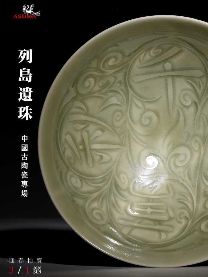 东京飞鸟迎春拍卖将于3月1日在东京飞鸟艺术空间隆重举行。本场拍卖特别征集到众多来源清晰,品质上乘的日本名家旧藏。特别推出「盛古风华-高古艺术专场」、「列岛遗珠-中国古陶瓷专场」、以及「笔研精良-文房清玩专场」等特色专场。本场拍卖亮点包括有来自于著名古陶瓷鉴赏家藤冈了一、杉原家、井筒家、德明轩、奈良古寺庙释出、京桥古美术老铺、八桂堂主人、同一茶道家旧藏、广州文物商店库出等传承有序的藏品悉数呈现。 此外,涵盖玉器、瓷器、铜器、木雕等门类精品的慕古撷珍专场,持续人气的「梵华妙相-古代佛教艺术专场」也不乏生货精品呈现。更有古代及近现代名家书画专场等八大专场,精彩纷呈,值得期待。